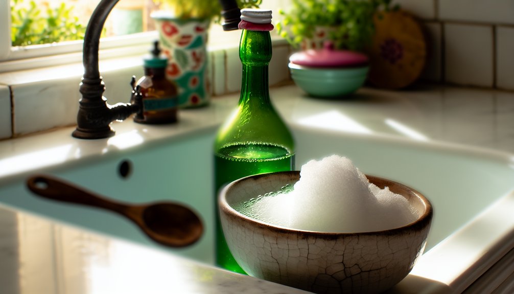 Leaving baking soda and vinegar in the drain overnight can considerably enhance the effectiveness of their chemical reactions for drain cleaning. The prolonged exposure allows the bubbling action to work on clogged drains, aiding in the breakdown of debris like hair and soap scum. This DIY remedy offers a natural solution for home maintenance, making it a preferred choice for eco-conscious individuals. Following this method with boiling water can optimize results and guarantee clear plumbing.